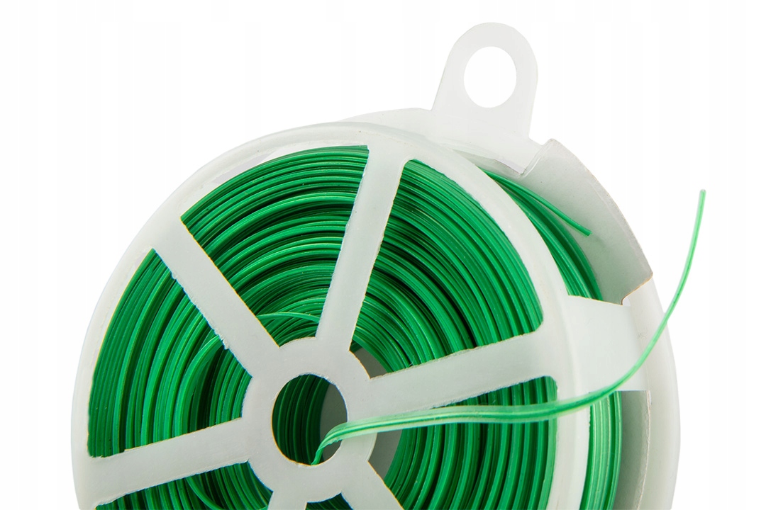 Uniwersalny drut ogrodowy o długości 50 m i średnicy 1,5 mm. Oferowany w zestawie z praktycznym obcinaczem, pozwalającym na szybszą oraz bardziej skuteczną pracę. Drut charakteryzuje się dużą trwałością oraz odpornością na warunki atmosferyczne. Jest on dodatkowo zabezpieczony specjalną otuliną PVC, która przylega do roślin, jednocześnie nie uszkadzając ich młodych pędów.