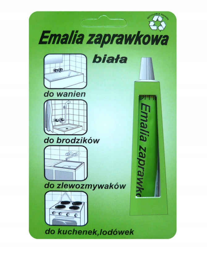 Biała emalia zaprawkowa o pojemności 14g to idealne rozwiązanie do naprawy drobnych pęknięć, odprysków i ubytków w powierzchniach emaliowanych wanien, brodzików, pralek, lodówek oraz piecyków. W zestawie znajduje się pędzelek ułatwiający precyzyjne nanoszenie emalii.