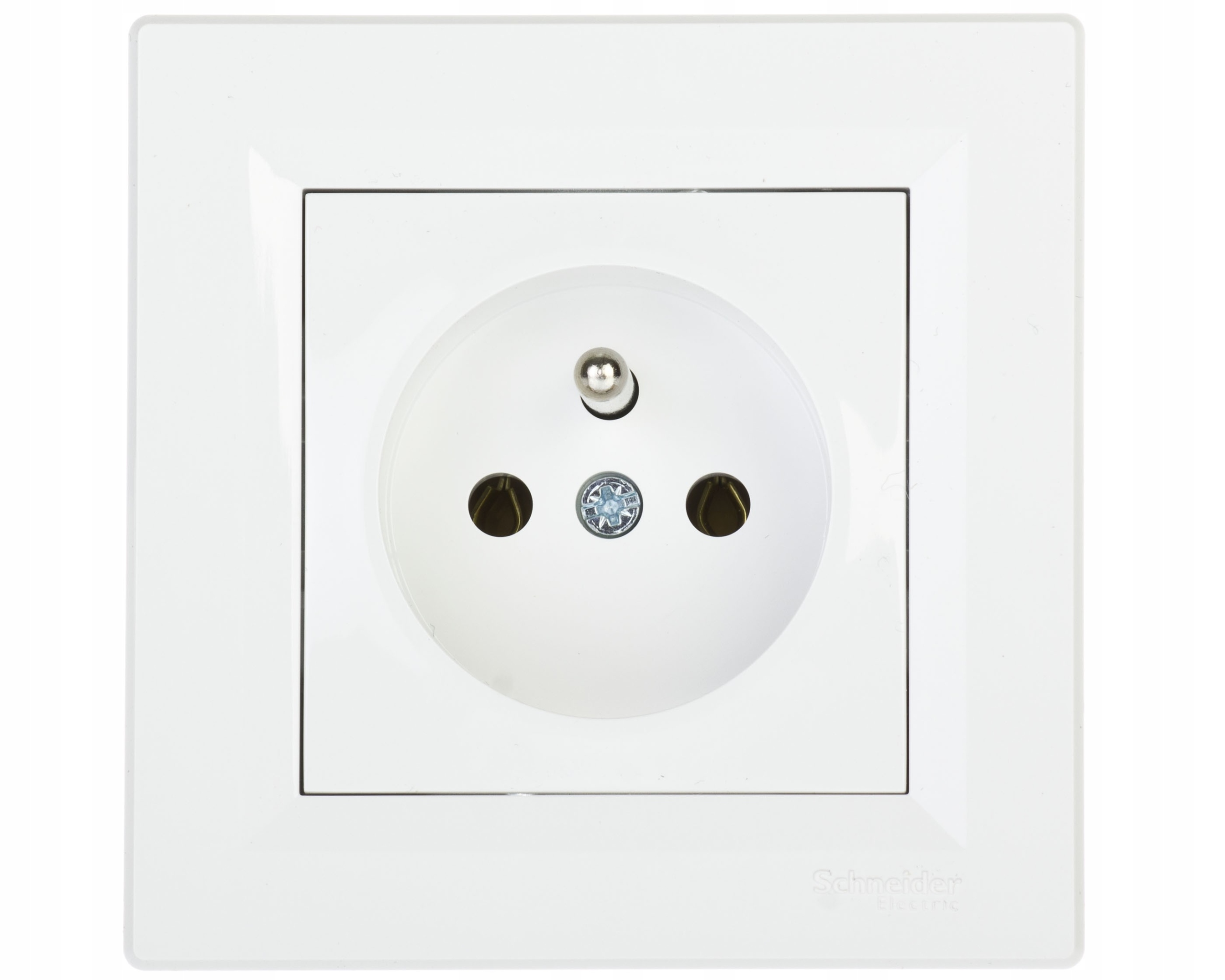 Gniazdo pojedyncze Schneider Asfora białe EPH2800121, z uziemieniem 16A