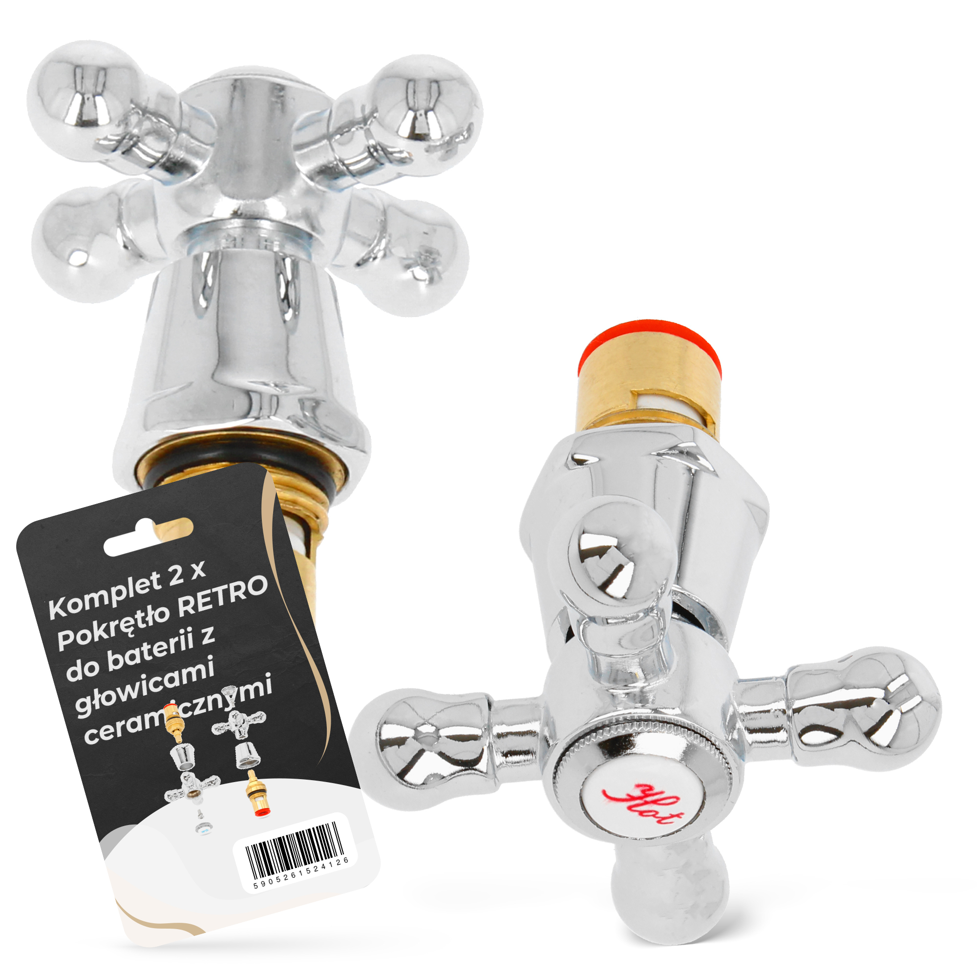 Komplet Pokręteł Retro + Głowice Ceramiczne 1/2″ 2+2 | Chrom, Metal
