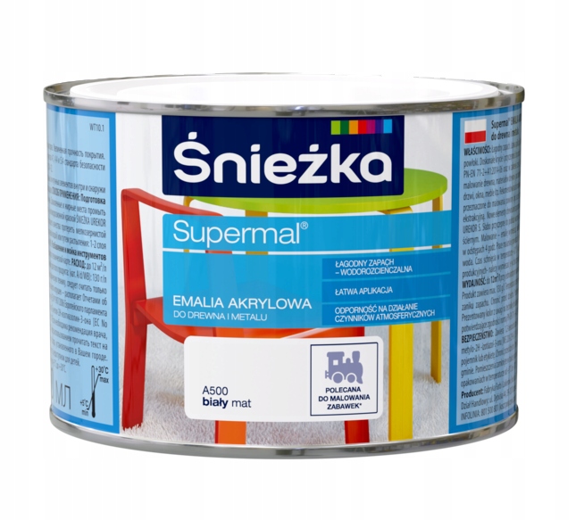 Śnieżka Supermal Emalia Akrylowa Do Drewna i Metalu – 0,4 Litra Biały Matowy