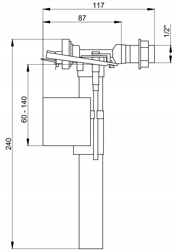 • zawór regulowanyw zakresie : 60 mm- 140 mm, dzięki czemu pasuje do większości Producentów spłuczek/kompaktów jak: KOŁO, CERSANIT, ROCA itp.