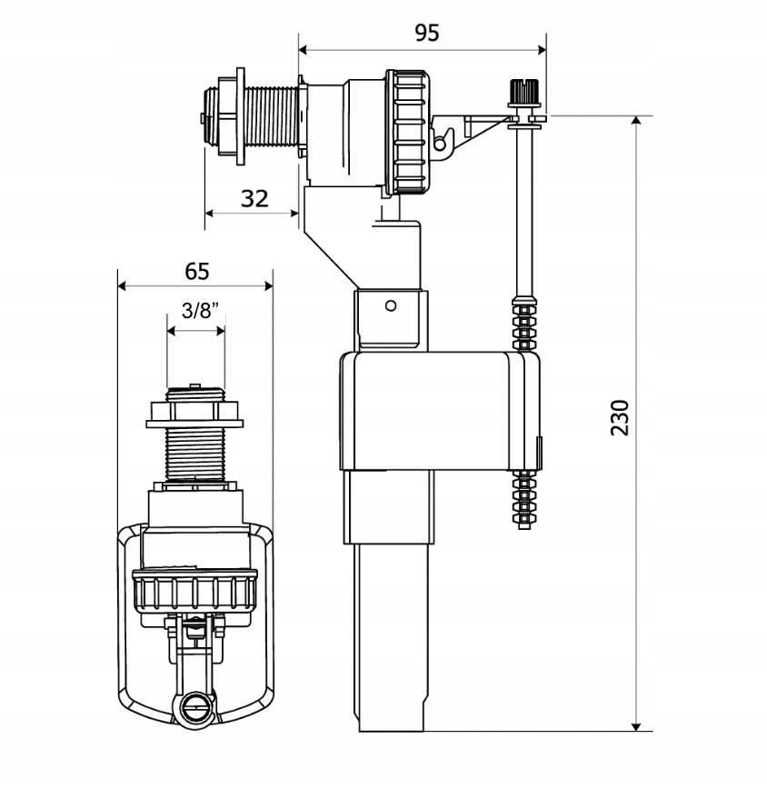 Zawór napełniający boczny o 3/8″ polskiej firmy KK-POL przeznaczony jest do zbiorników ceramicznych lub wykorzystywanych z bocznego zasilania.