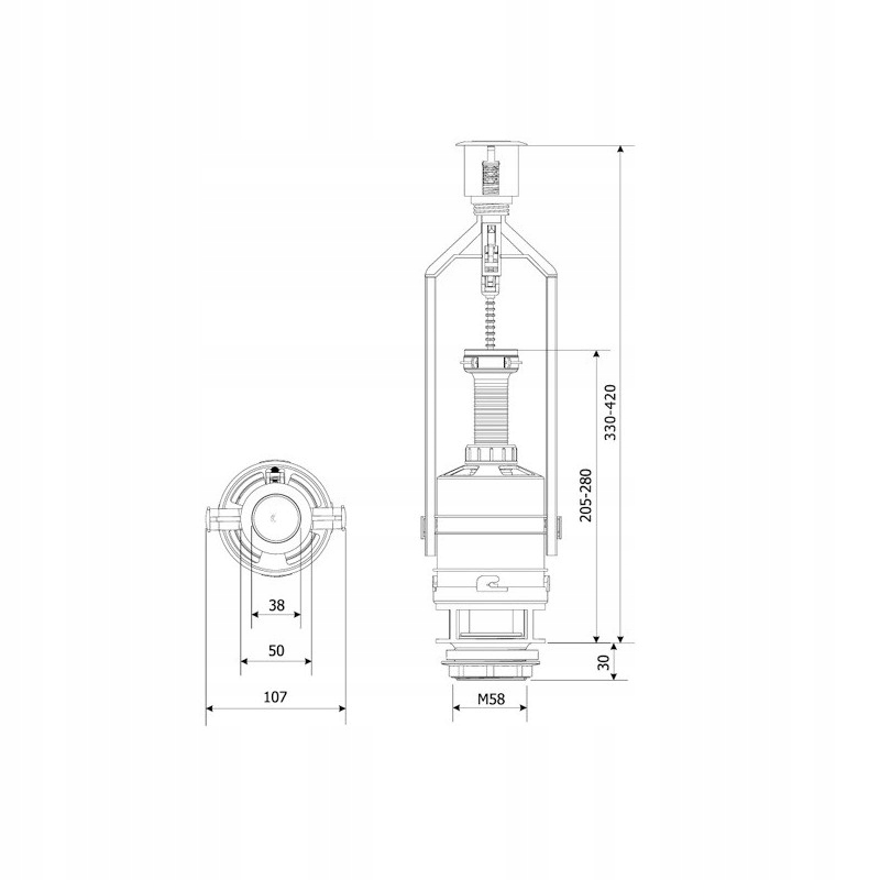 ✔️ Przeznaczony do kompaktów o wysokości od 330 do 420 mm i minimalnym poziomie napełnienia 130 mm.