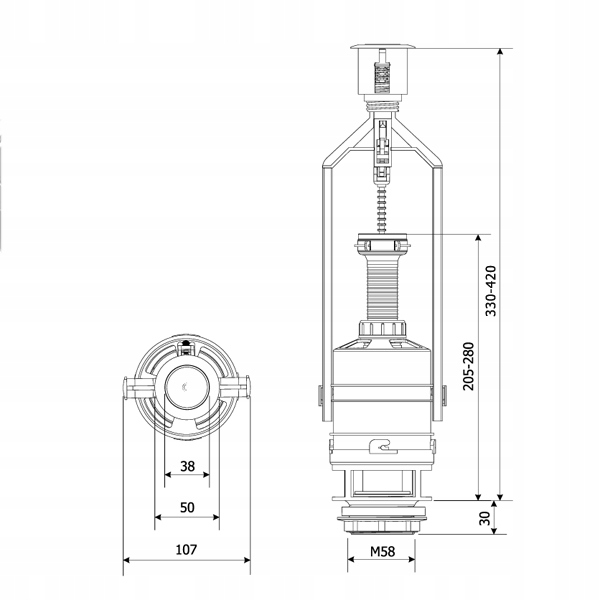 1️⃣ Zawór spustowy do spłuczki z funkcją stop