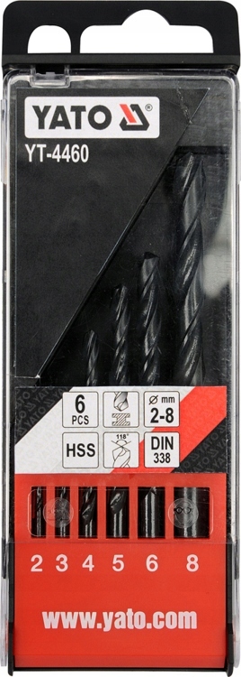 Wiertła HSS 2-8 mm, Zestaw 6 sztuk do Metalu, Yato YT-4460 – Profesjonalne Narzędzie
